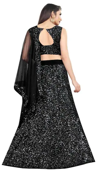Manvaa Women Black Velvet Embellished Lehenga Choli - BSB0000000010